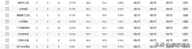 值得一提的是四川男籃成為目前唯一尚未取得比賽勝利的球隊,戰績為0勝8負,排在積分榜倒數第一。