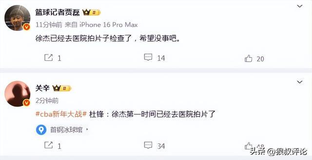 涉及到徐傑傷病問題,杜鋒賽後表示:徐傑第一時間去了醫院拍片,希望無大礙。
