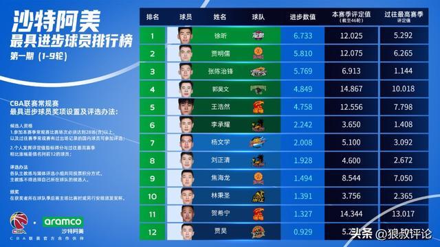 北京時間1月8日,根據CBA官方的公示,2025-2026賽季CBA聯賽第1-9輪最具進步球員,廣州龍獅球員徐昕排在第一。