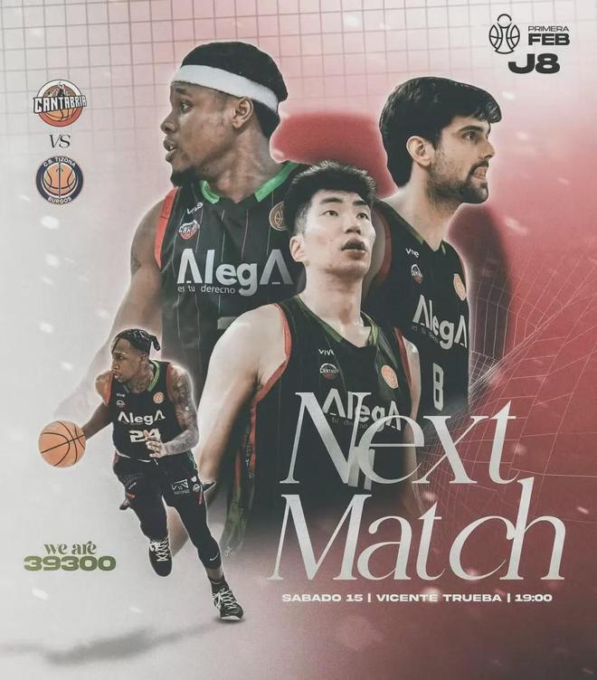 其次,坎塔布裏亞正麵臨關鍵的西乙季後賽卡位戰。當地時間11月15日,坎塔布裏亞將與直接競爭對手 C.B. Tizona Burgos 交手,目前坎塔布裏亞僅比對手多出一個勝場,此役結果將直接影響季後賽席位的歸屬,絕對不容有失。