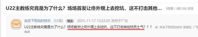 佟家俊的數據真是侮辱了廣東球迷,所有數據欄均是0,0出手,0得分,0助攻,0搶斷,而倒是有一次失誤。鄭永剛這樣的用人也遭到廣東球迷吐槽,到時打半決賽和決賽,還敢不敢用佟家俊打首發?這是不是有關係戶的意思?是不是為了杜鋒的麵子才如此重用佟家俊的。廣東球迷紛紛不看好鄭永剛帶這支U22。除了重用扶不上牆的人,也不懂得使用大中鋒,曾兩次入選 國家集訓隊的徐昕,坐穿冷板凳,直到最後4分鍾的垃圾時間讓他上場。