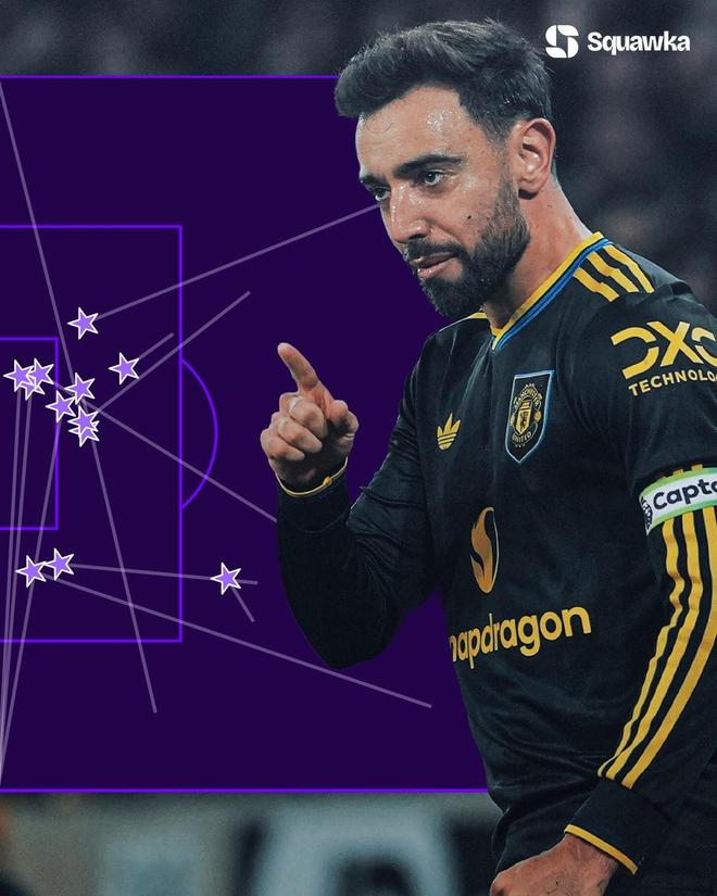 2025年即將結束,知名數據機構Squawka統計了布魯諾-費爾南德斯這一年的數據,這位曼聯隊長有四項數據排在英超首位。