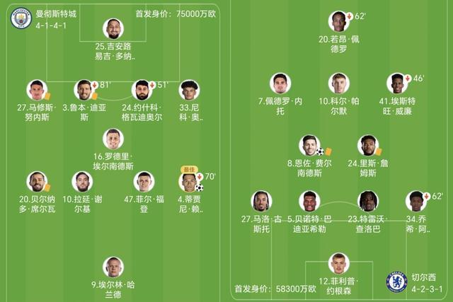 下半場再戰,瓜迪奧拉的調整較為保守,球隊進攻節奏似乎有所放緩,給了切爾西喘息之機。第51分鍾,格瓦迪奧爾受傷被胡桑諾夫換下。