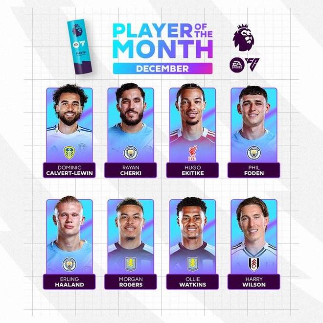 官方消息,英超12月最佳球員候選名單公布,哈蘭德、埃基蒂克、勒溫、福登、摩根-羅傑斯、沃特金斯、謝爾基、哈裏-威爾遜在列。
