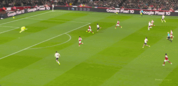 下半場回到場上,阿森納全隊的狀態依然不理想,包括蘇比門迪出現停球失誤、索博斯洛伊主罰任意球一腳遠射抽飛。