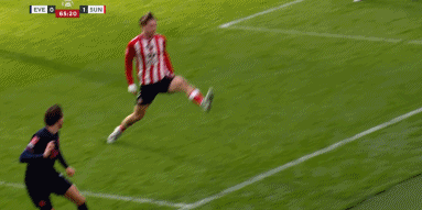第89分鍾,阿茲努造點,詹姆斯-加納操刀命中,埃弗頓1-1!